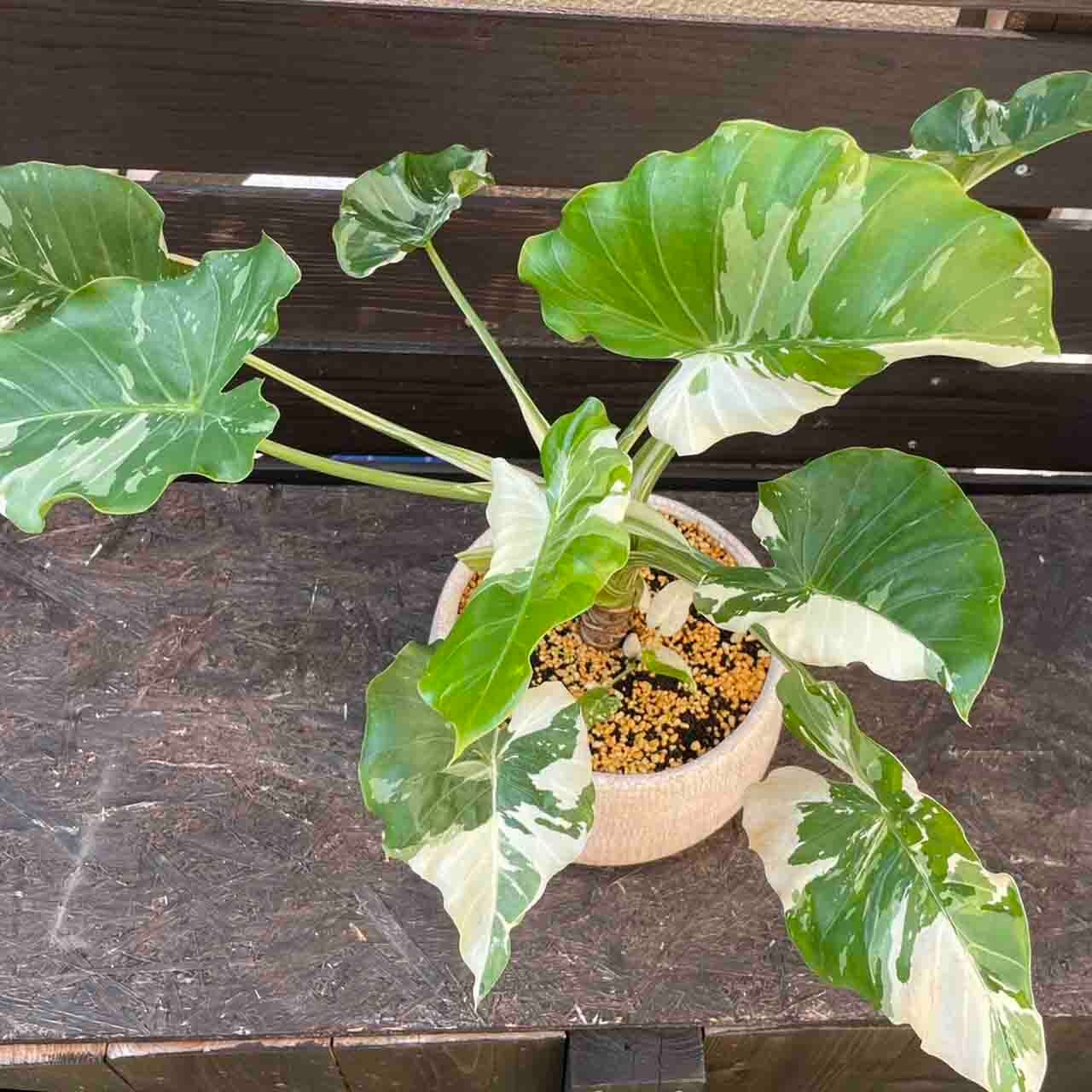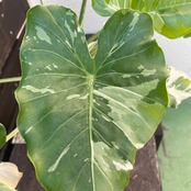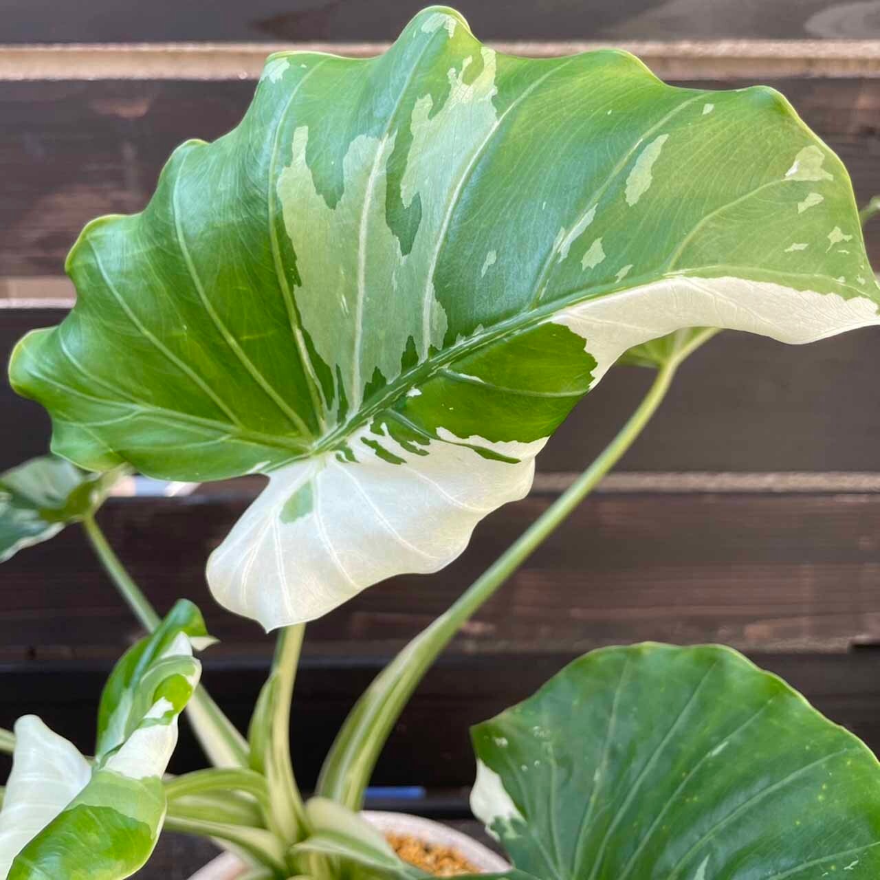 キレイな斑入りのクワズイモ「オキナワシルバー」です。